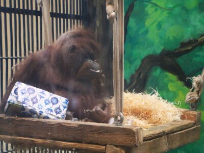 Urodziny orangutanów przebiegły w spokojnej atmosferze, gdyż nasi solenizanci są z natury powolni i nigdzie im się nie spieszy. Wszystkie prezenty zostały dokładnie rozpakowane i przetestowane. Teraz pozostaje już tylko zaprosić opiekunów do posprzątania powstałego rozgardiaszu.