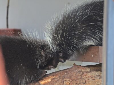 Na koniec chcielibyśmy przedstawić samiczkę ursona, która przyjechała do nas z poznańskiego zoo. Po aklimatyzacji przyszedł czas poznania swojego partnera, który w naszym ogrodzie mieszka od kilku lat. Urson amerykański jest gatunkiem, który dużo czasu spędza na drzewach, a na pierwszy rzut oka przypomina jeżozwierza. Posiada on bardzo unikalny system obrony, używa kolców do odstraszania drapieżników. Na grzbiecie tych zwierzęta znajduje się około 30 000 kolców, które nie są puste w środku, ale są wypełnione gąbczastą substancją, co czyni je bardzo sztywnymi i lekkimi.